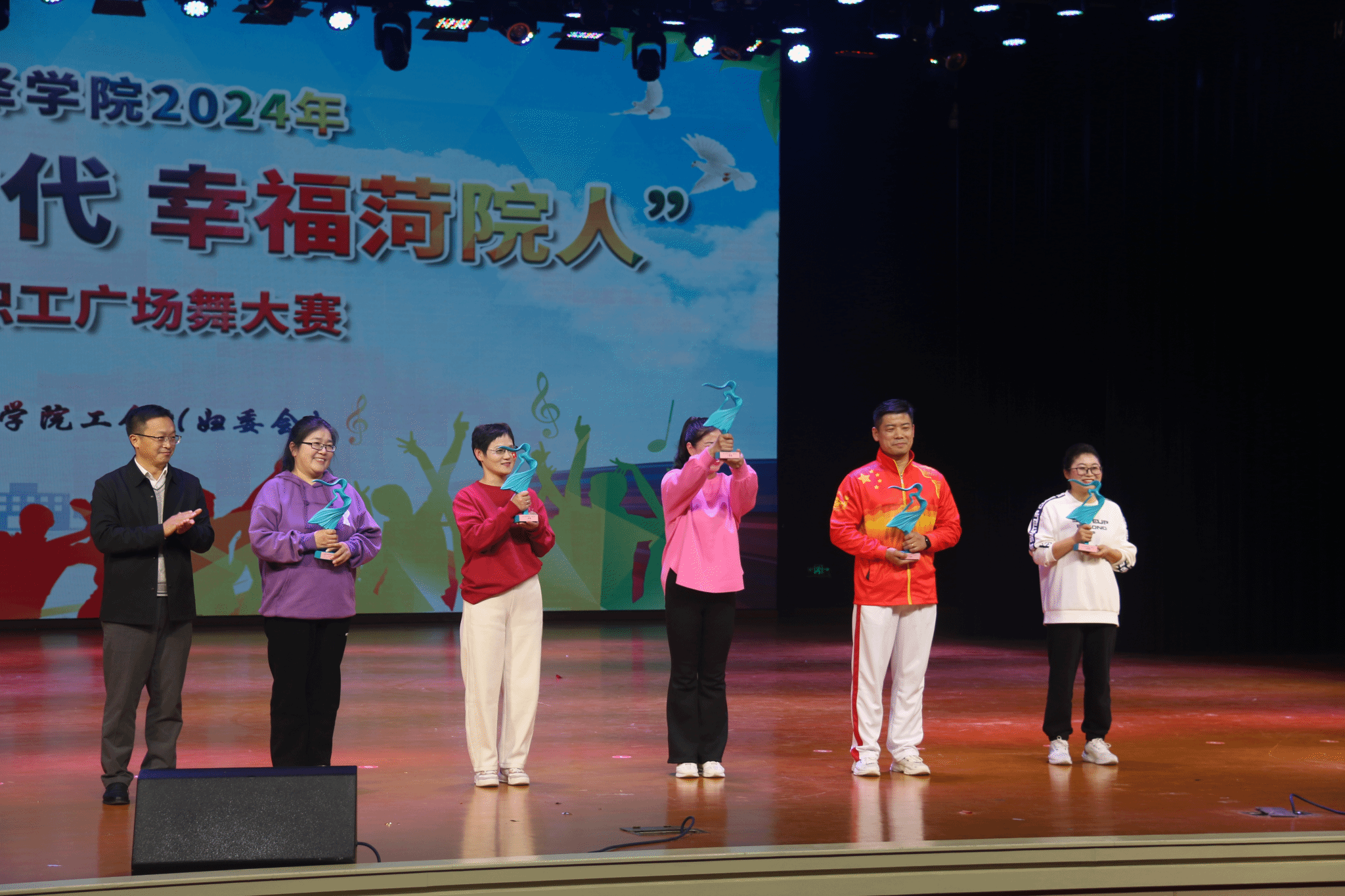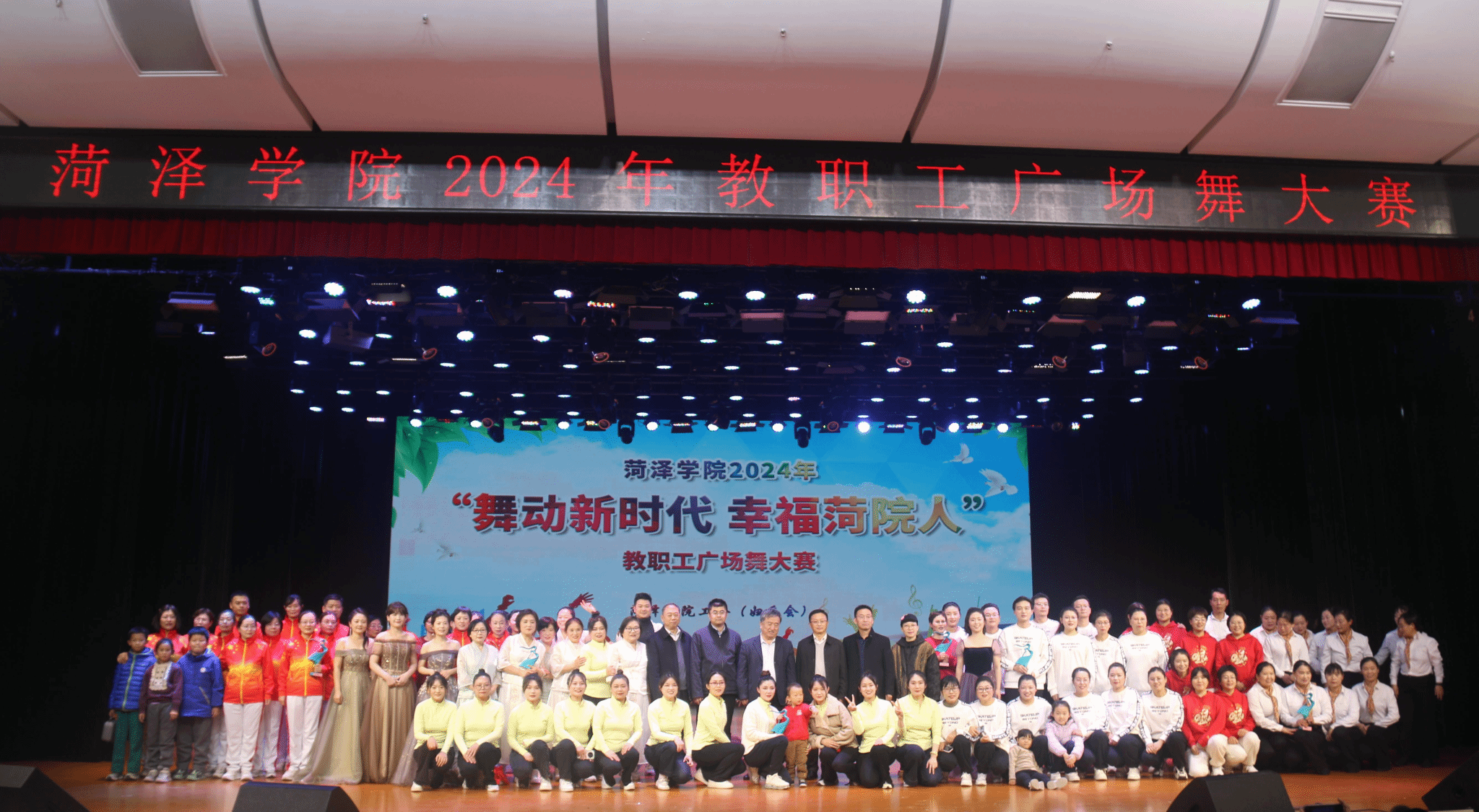 12月6日晚,由学校工会(妇委会)主办的beat365正版唯一官网2024年“舞动新时代幸福菏院人”教职工广场舞大赛在艺术中心演播厅成功举办。beat365正版唯一官网院长高涛、党委副书记佀君淑带领16名教职工组队参加比赛。